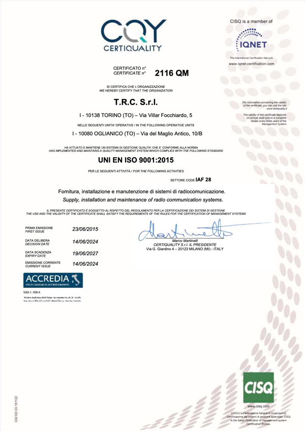 UNI EN ISO 9001:2015 CERTIQUALITY